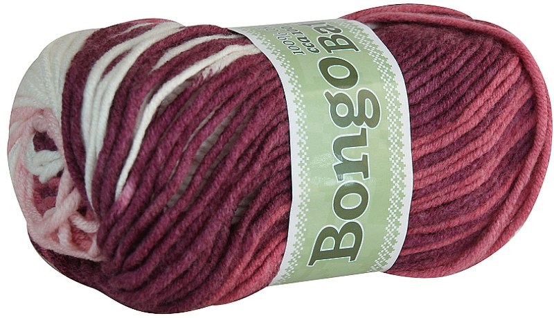 Pletací příze Bongo batik, bíl.růž.tm.růž. , 100% akryl, 100g-120m, jehlice 6-8, obj.číslo 607