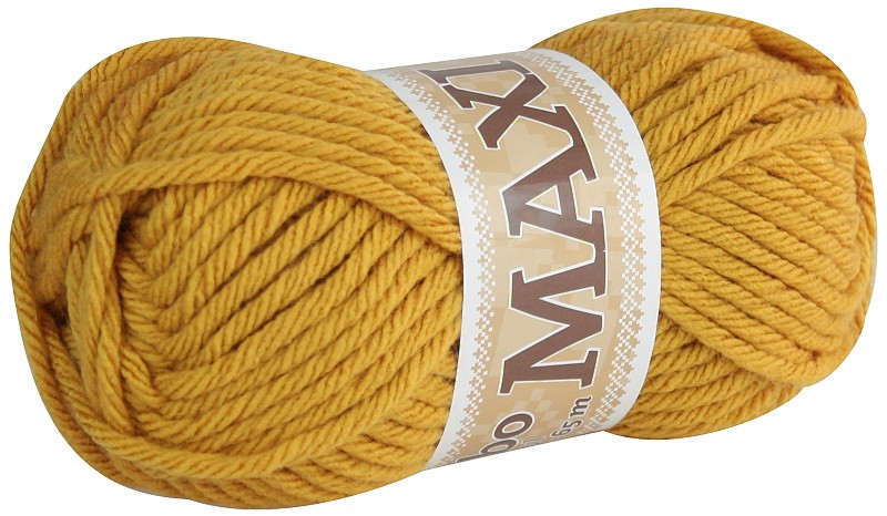 Nové barvy pletací příze Jumbo MAXI, vhodná i k pletení na rukou, barva hořčicová, složení 100% akryl, 100g-65m, jehlice 9, obj.číslo 1115