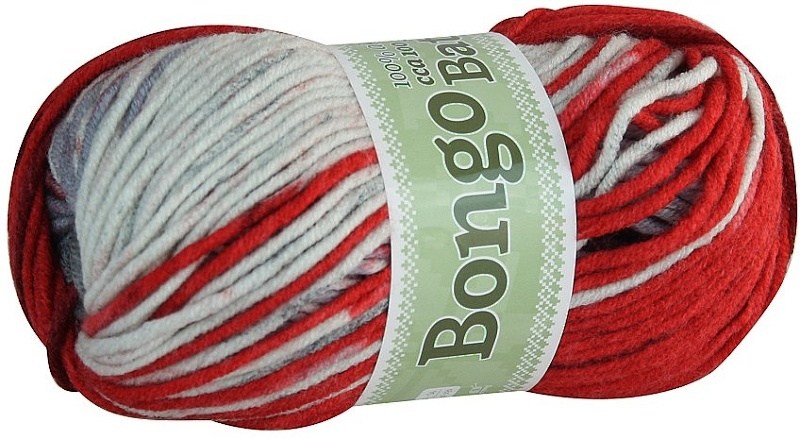 Pletací příze Bongo batik, čer.vín.čern.šedá,bíl. , 100% akryl, 100g-120m, jehlice 6-8, obj.číslo 605