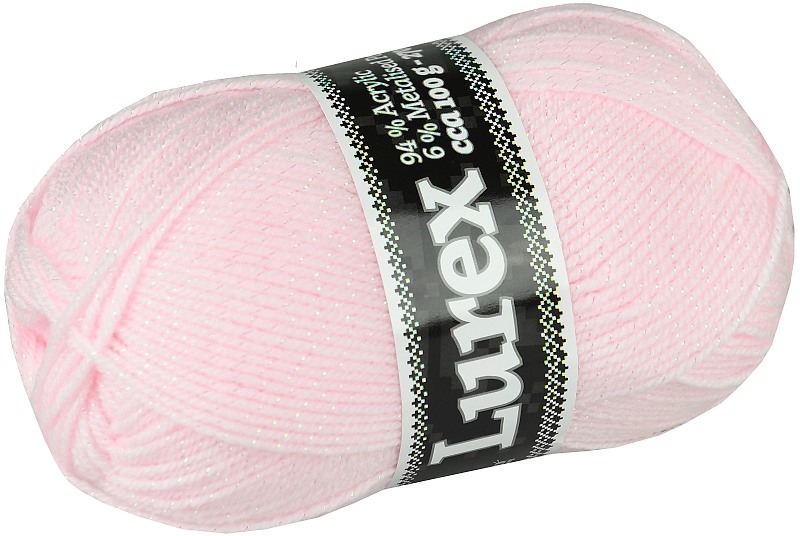 Nová pletací příze Lurex, růžová, 94% akryl, 6% Metalised Polyester, 100g-270m, jehlice 3,5,-4, obj.číslo 991