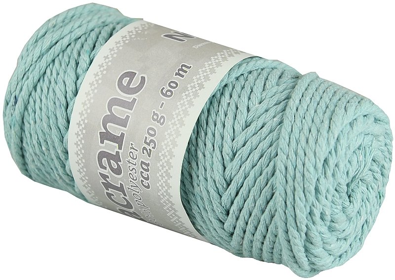 Macrame NGM Je splétaná šňůra. Používá se na výrobu drhaných výrobků i na háčkování tašek, košíků a různých dekorací.