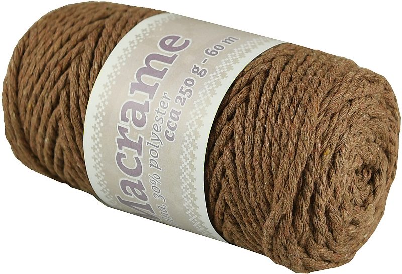 Macrame NGM Je splétaná šňůra. Používá se na výrobu drhaných výrobků i na háčkování tašek, košíků a různých dekorací.