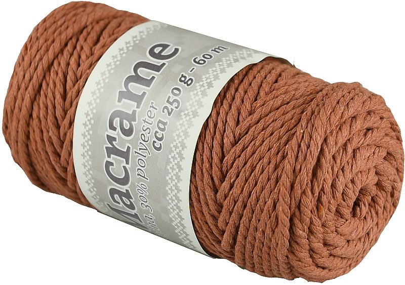 Macrame NGM Je splétaná šňůra. Používá se na výrobu drhaných výrobků i na háčkování tašek, košíků a různých dekorací.