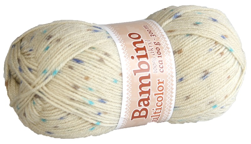 Bambino multicolor béžová s modrými a růžovými tečkami, 100% akryl, 100g-300m, jehlice 4, obj. číslo 974