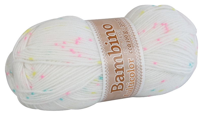 Bambino multicolor béžová s modrými a růžovými tečkami, 100% akryl, 100g-300m, jehlice 4, obj. číslo 975