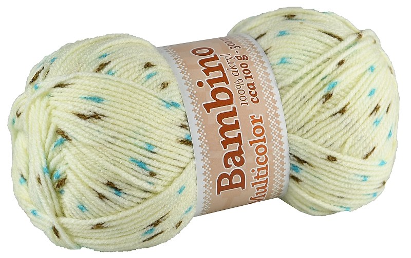 Bambino multicolor béžová s modrými a růžovými tečkami, 100% akryl, 100g-300m, jehlice 4, obj. číslo 977