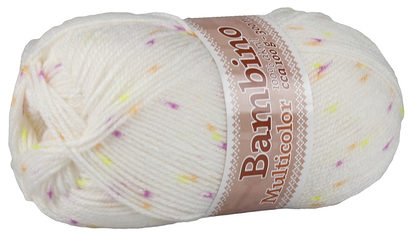 Bambino multicolor bílá s fialovo -oranžovo - žlutými tečkami, 100% akryl, 100g-300m, jehlice 4, obj. číslo 970