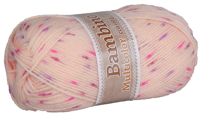 Bambino multicolor lososová s růžovo - fialovými tečkami, 100% akryl, 100g-300m, jehlice 4, obj. číslo 973