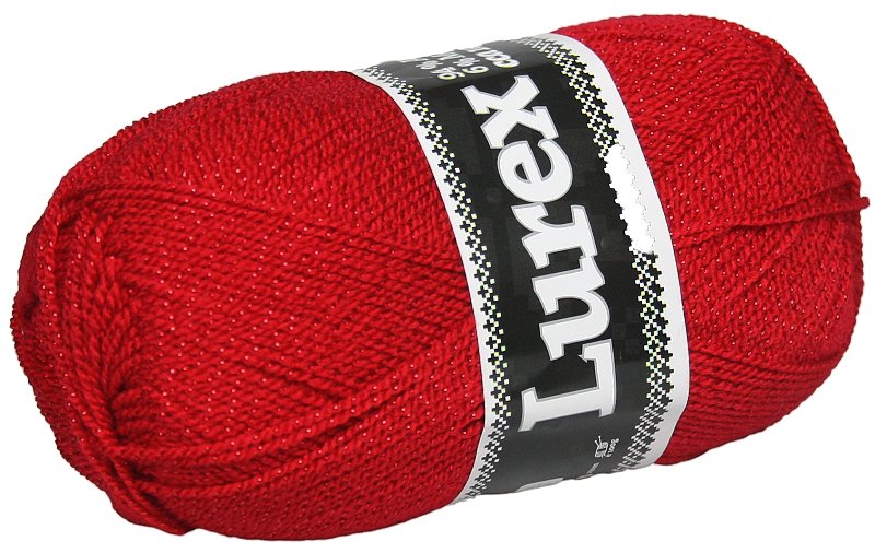 Nová pletací příze Lurex, krásně červená s červenou nitkou, 94% akryl, 6% Metalised Polyester, 100g-270m, jehlice 3,5,-4, obj.číslo 933-K