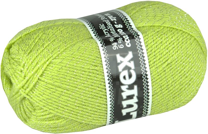 Nová pletací příze Lurex, zelená se stříbrnou nitkou, 94% akryl, 6% Metalised Polyester, 100g-270m, jehlice 3,5,-4, obj.číslo 964-G