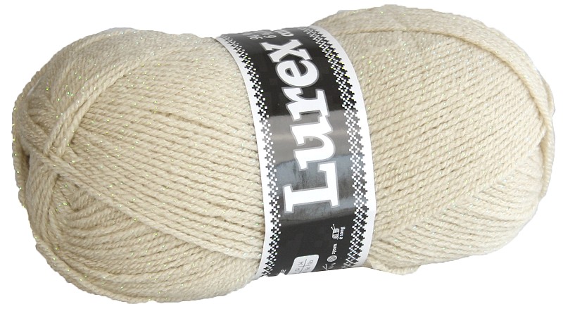 Nová pletací příze Lurex, smetanová s perletovou nitkou, 94% akryl, 6% Metalised Polyester, 100g-270m, jehlice 3,5,-4, obj.číslo 978